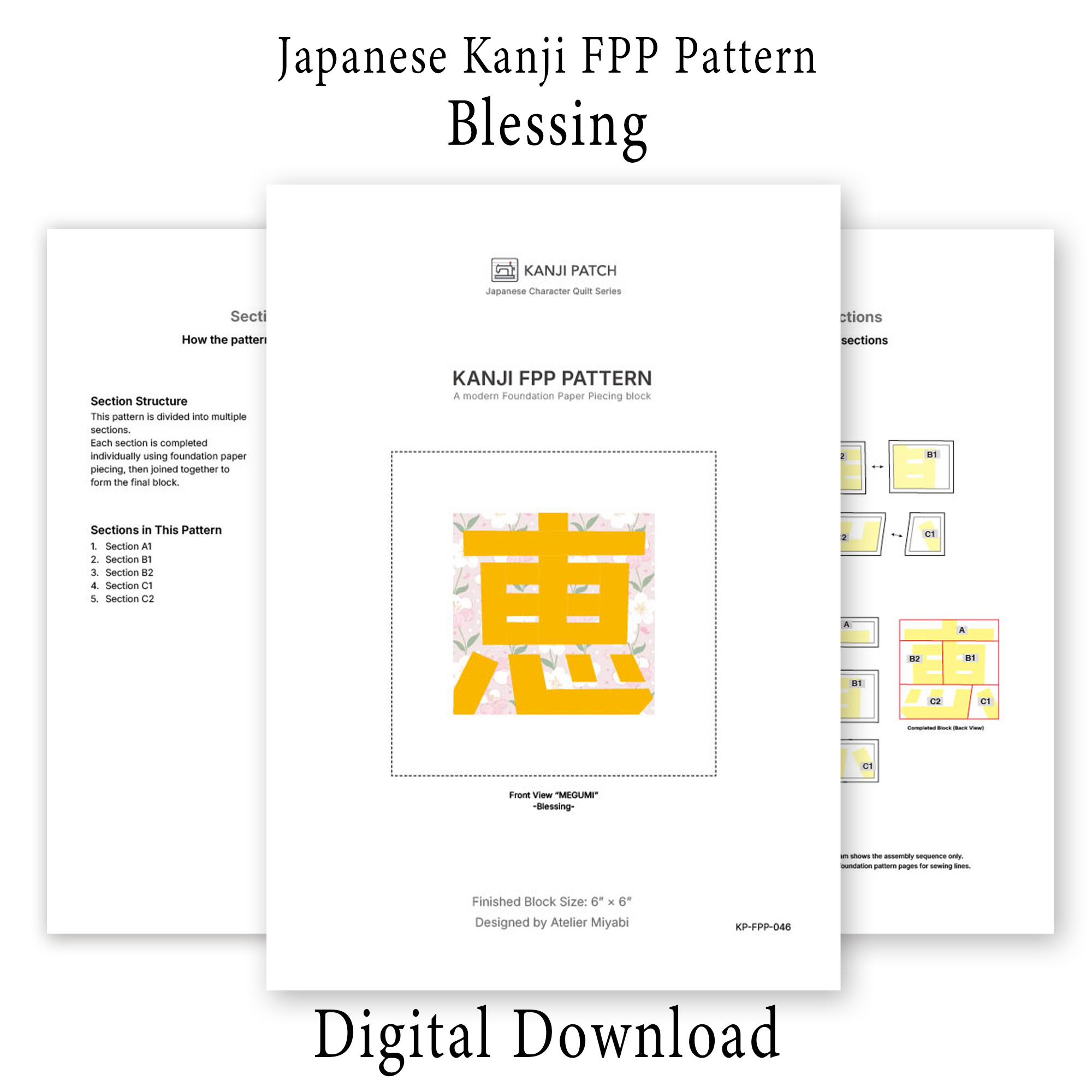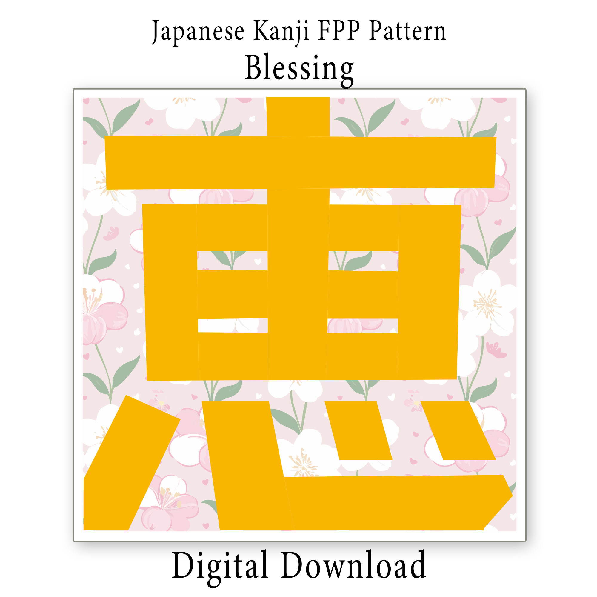A beginner-friendly Japanese Kanji Blessing FPP pattern in PDF format, perfect for elegant quilts, Japanese decor, and meaningful handmade projects.