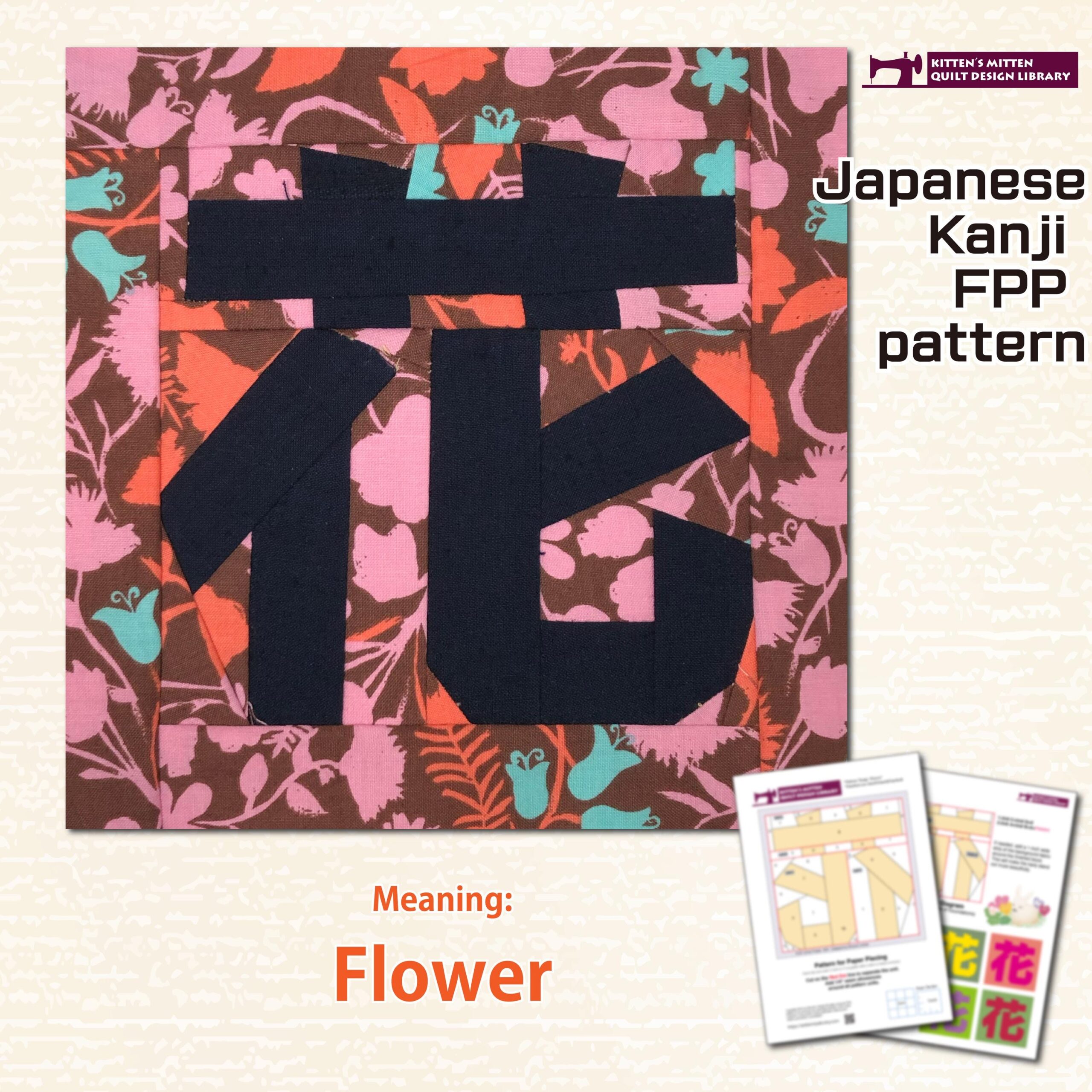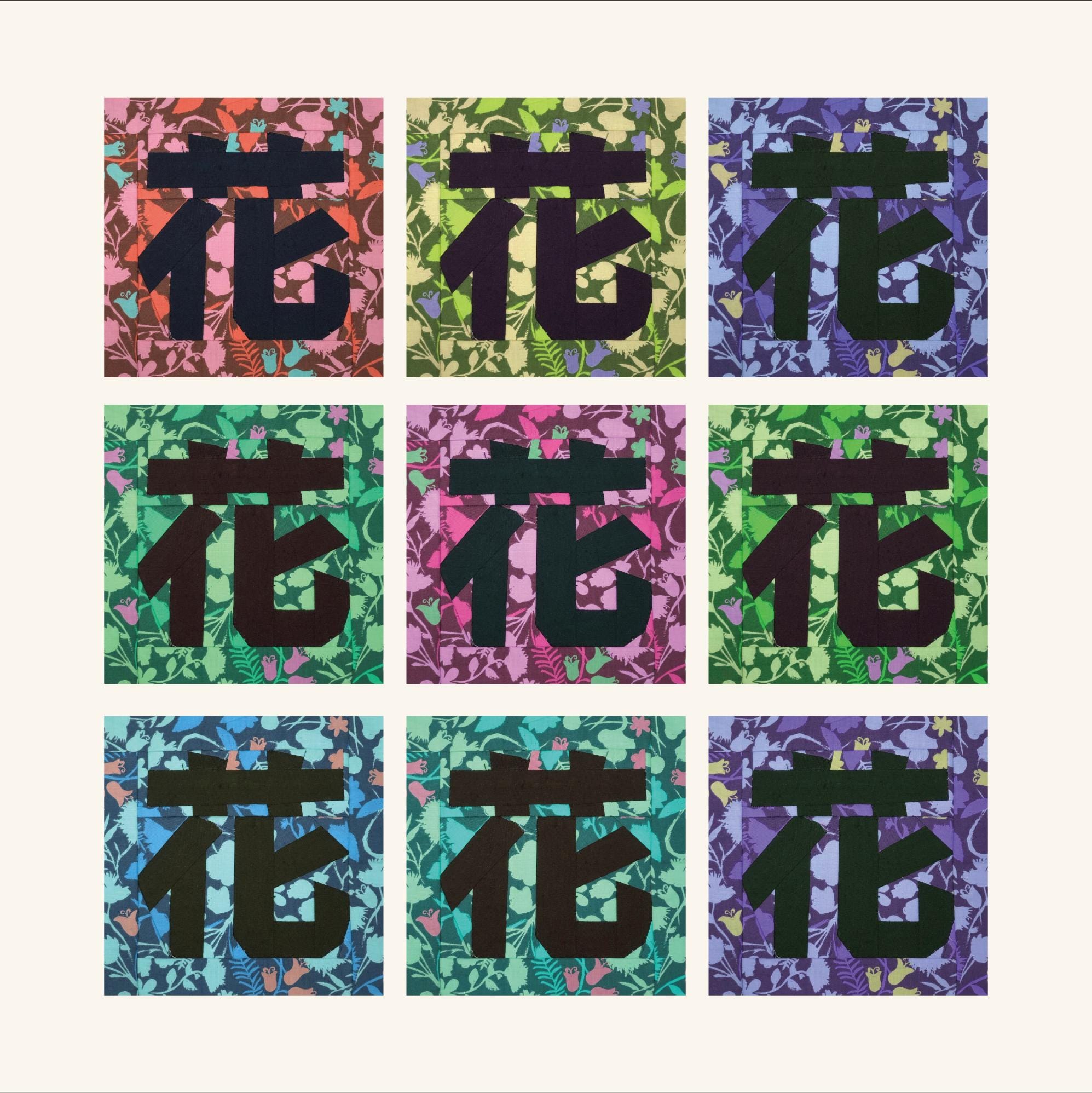 Bring beauty and serenity into your quilting with this symbolic Japanese Kanji block: “花 / Hana” (Flower).